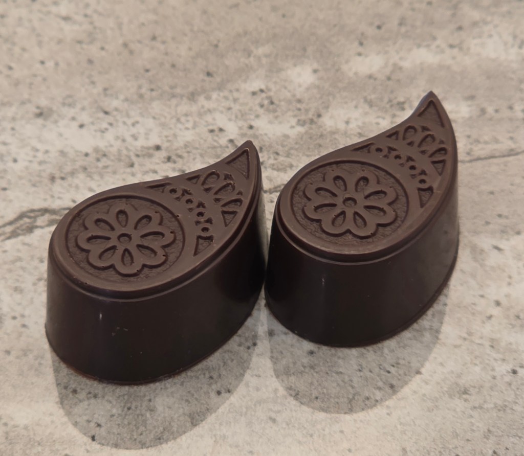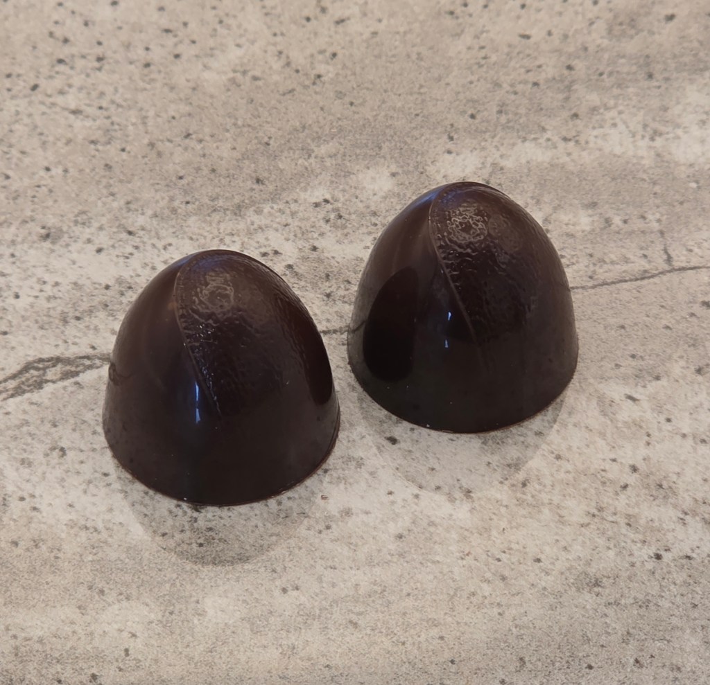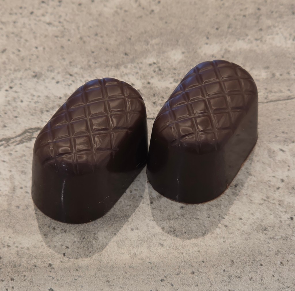 Dark chocolate shell, with a dark chocolate chili ganache