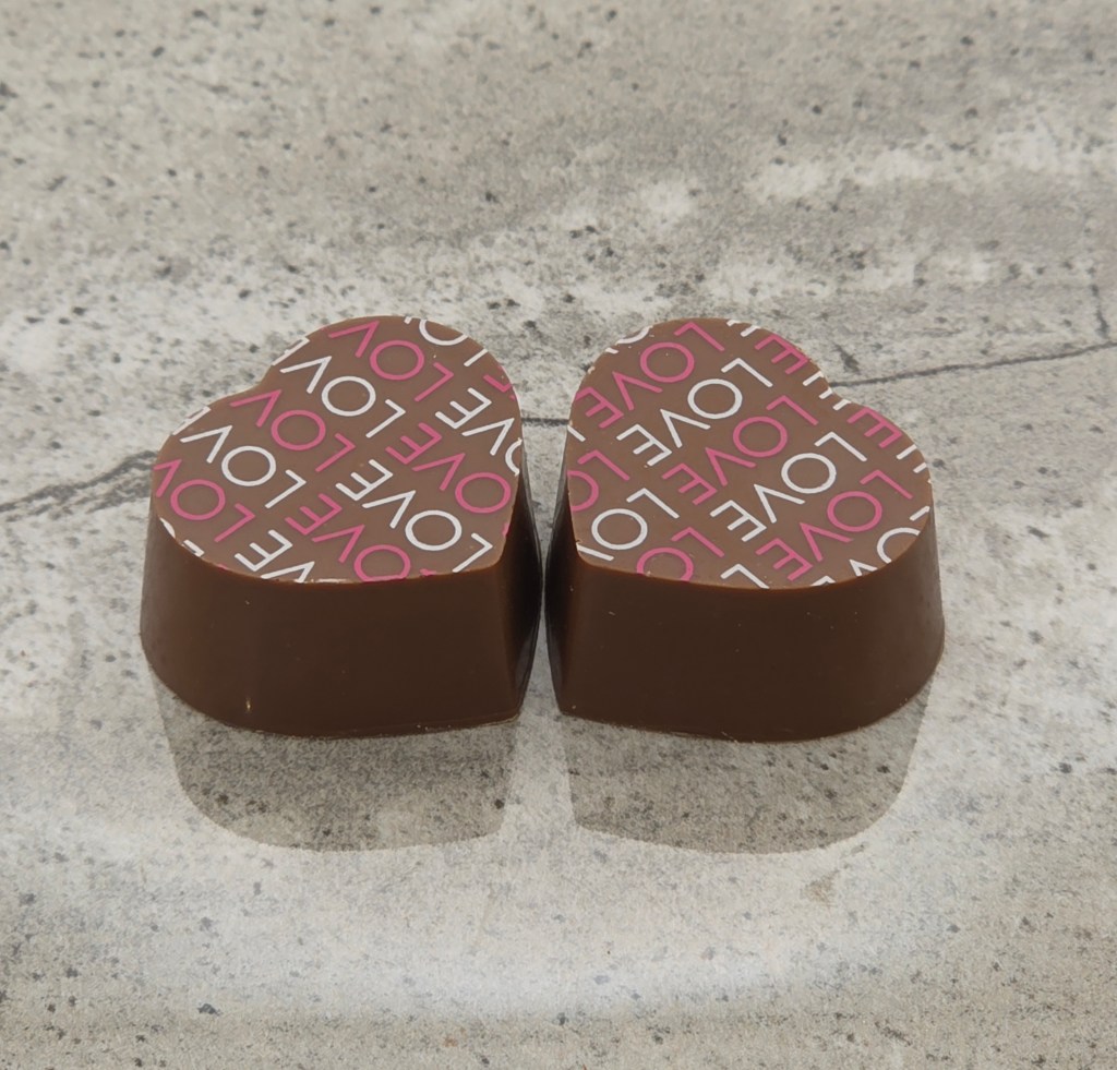 Milk chocolate shell, with caramel