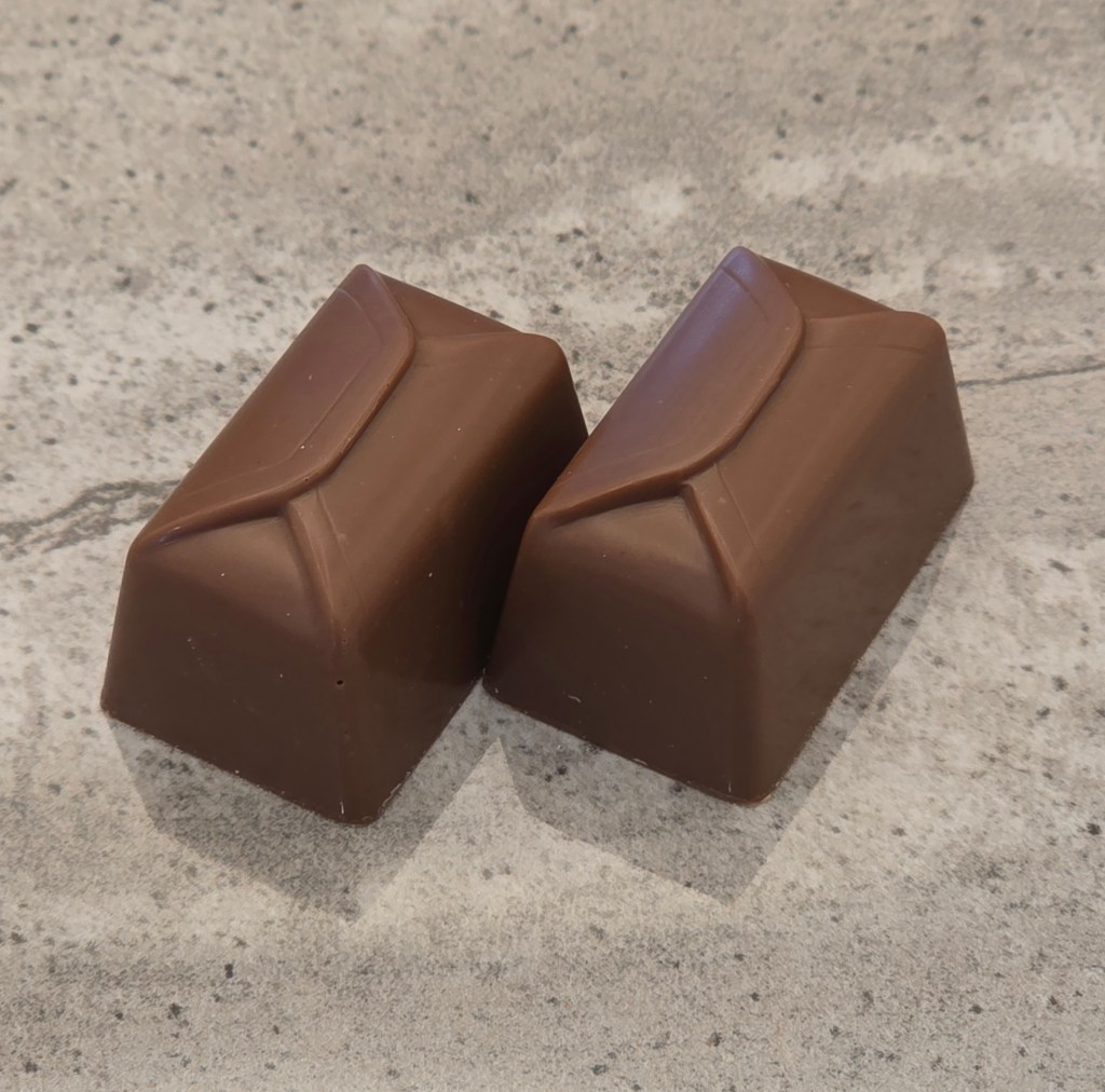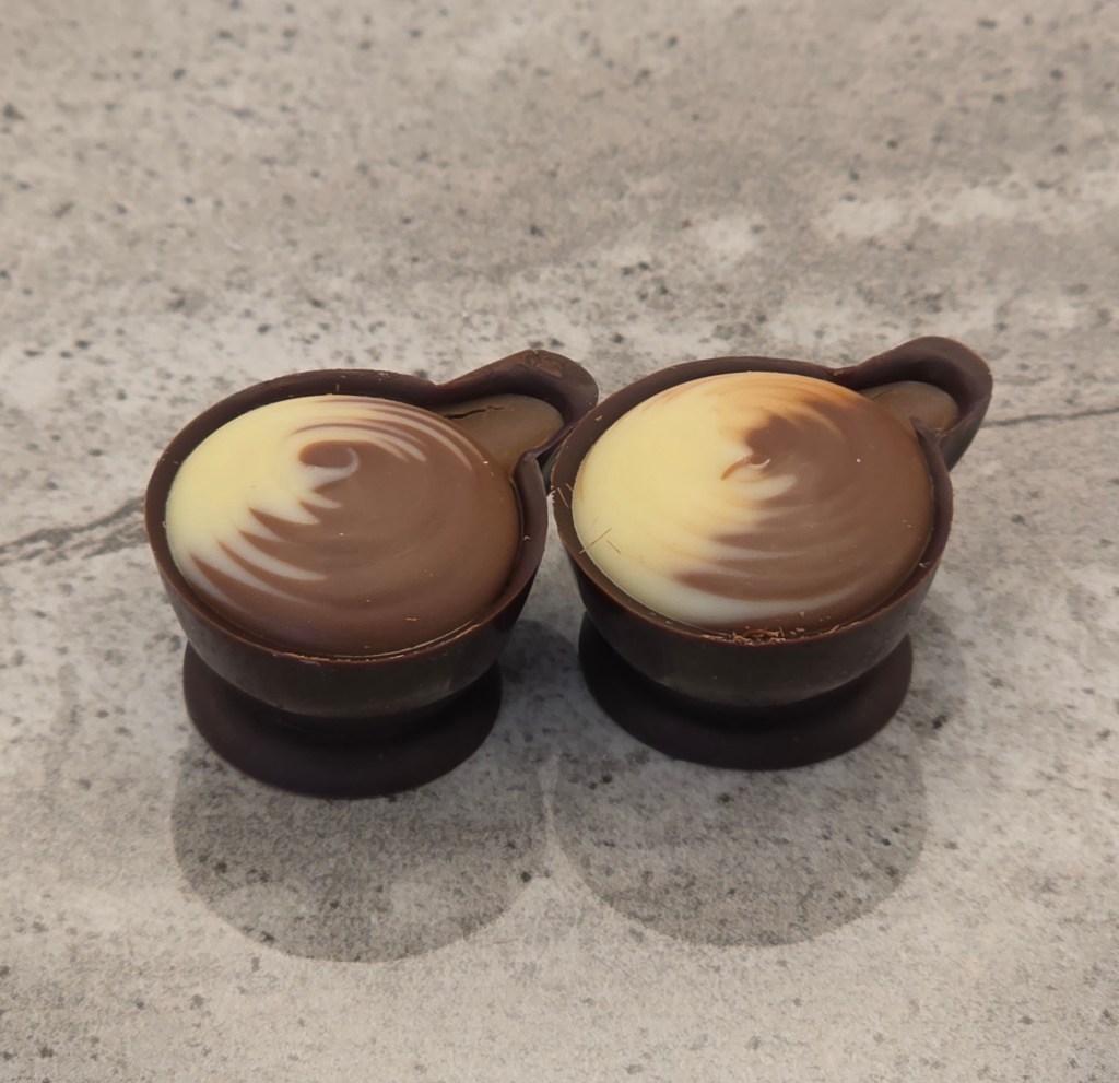 Milk chocolate shell, with liquid coffee liquor, covered in milk chocolate
