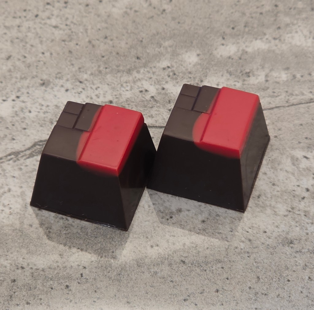 Dark chocolate shell, with a dark coffee liquor ganache, and white chocolate vodka ganache
