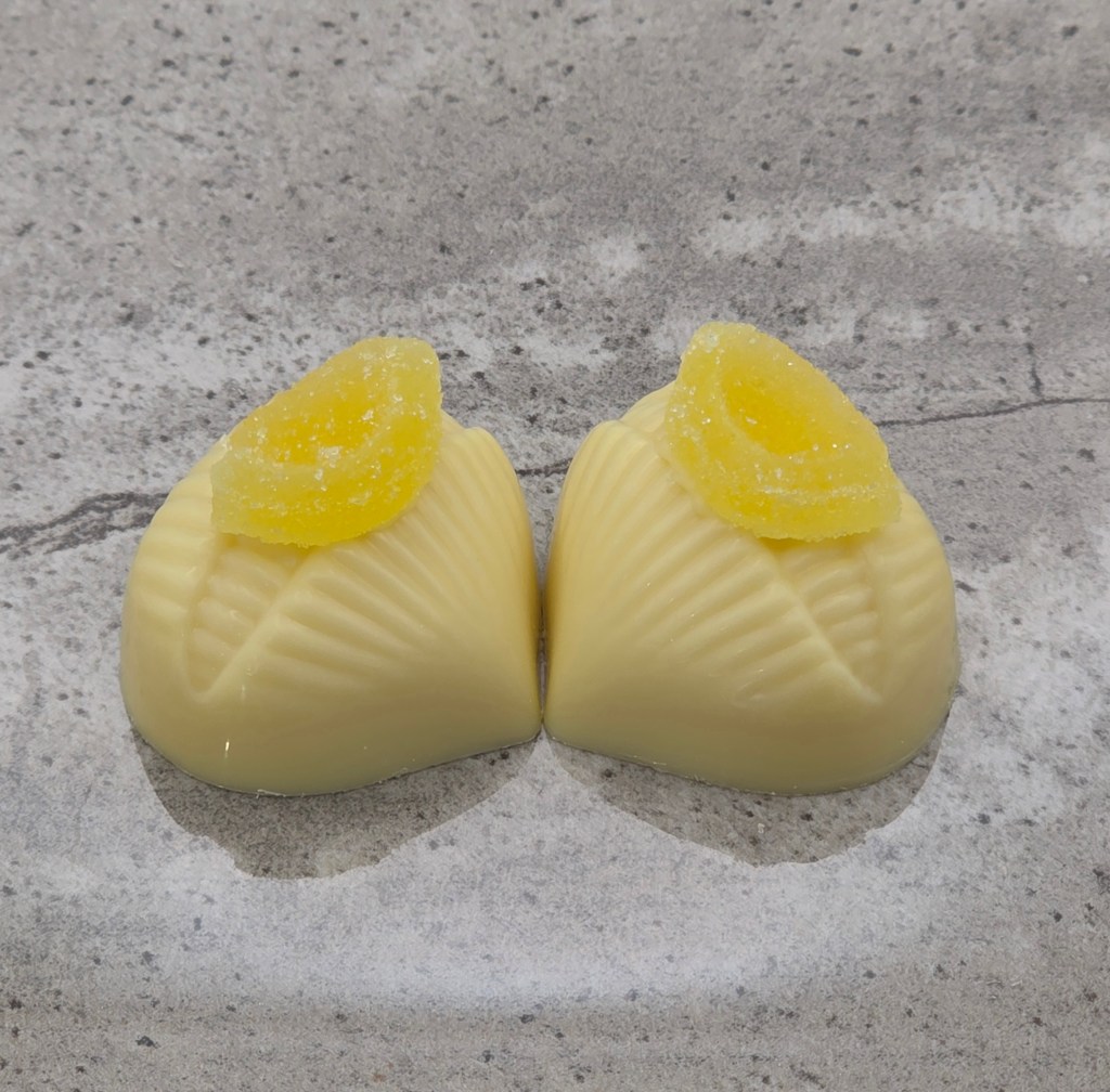 White chocolate shell, with a white chocolate lemon ganache