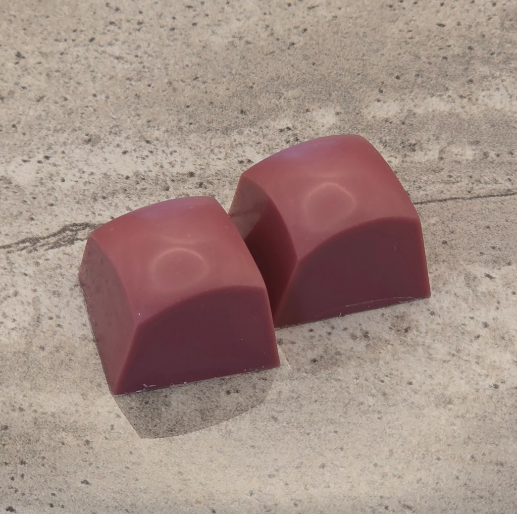 Ruby chocolate shell, with a milk chocolate rose water ganache